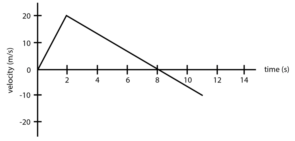 3.) Consider a car moving on a straight track, and the plot below shows the car’s velocity as a function of time.