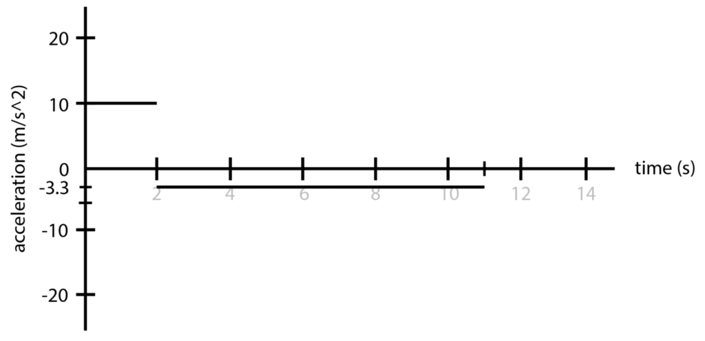 Therefore, drawing the car’s acceleration in a a vs t graph: