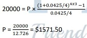 Example 2: Dave wants to save $20,000 for a down payment on a really cool speedboat. He opens an annuity at 4.25% compounded quarterly for 3 years. What is his quarterly payment?