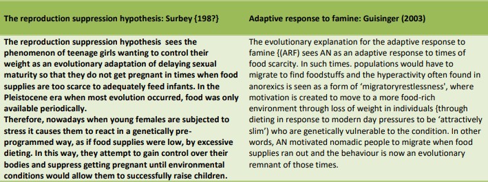 - Psychological explanations see AN as arising from non-physiological factors. Three possible psychological explanations are: