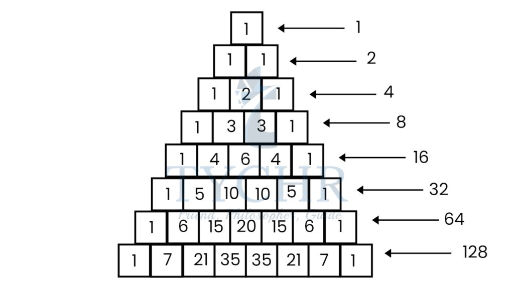 Pascal’s triangle is a triangular array constructed by summing adjacent elements in preceding rows. Pascal’s triangle contains the values of the binomial coefficient.