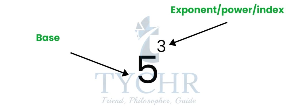 - Exponents- A quantity representing the power to which a given number or expression is to be raised. Ex.- 53=5×5×5 (53 is read as ‘five raised to the power three’ or ‘Five to the third power’)