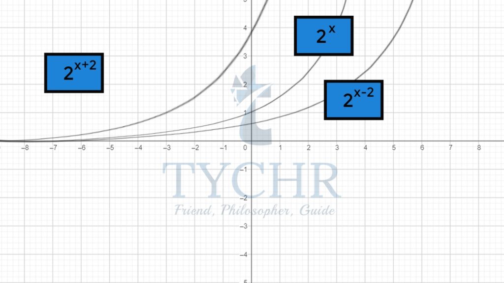 The graph of 2x moves two units horizontally left when 2 is added and moves two units horizontally right when 2 is subtracted.
