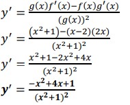 𝒚′ = ( 𝒇(𝒙)/𝒈(𝒙) ) ′ = 𝒈(𝒙)𝒇 ′ (𝒙)−𝒇(𝒙)𝒈 ′(𝒙)/ (𝒈(𝒙))𝟐