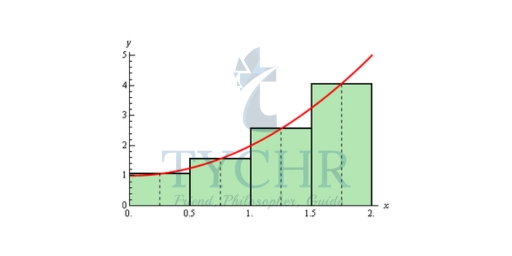 It’s probably easier to see this with a sketch of the situation. So, let’s divide up the interval into 4 subintervals and use the function value at the right endpoint of each interval to define the height of the rectangle. This gives,Note that by choosing the height as we did each of the rectangles will over-estimate the area since each rectangle takes in more area than the graph each time. Now let’s estimate the area. First, the width of each of the rectangles is 1/2. The height of each rectangle is determined by the function value at the right endpoint and so the height of each rectangle is nothing more that the function value at the right endpoint. Here is the estimated area.