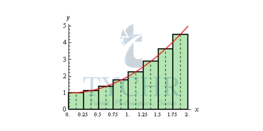 In this case we can see that the estimation will be an underestimation since each rectangle misses some of the area each time.