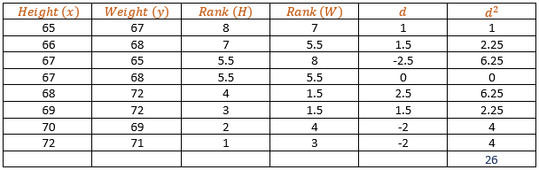 rs = 1 – (6 × 27)/ (8×6) = 0.679