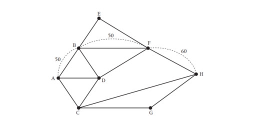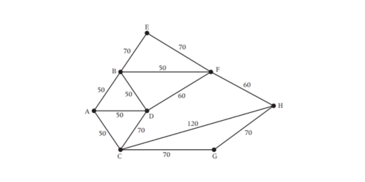 3. The shortest way of joining A to H is using the path AB, BF, FH, a total length of 160.