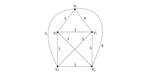 Example 1: Use the nearest-neighbour method to solve the following travelling salesman problem, for the graph shown in fig starting at vertex v1.