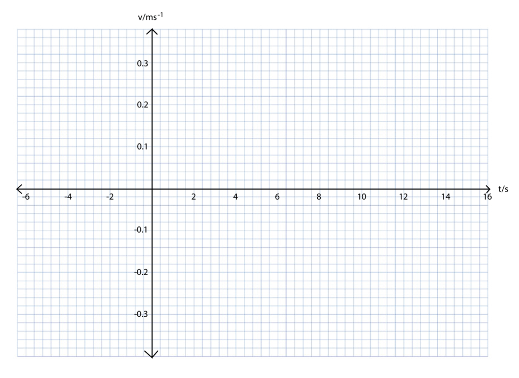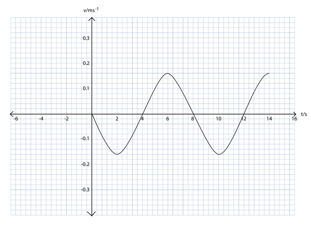 iii.) The amplitude of the oscillation is 0.16 m. On the axes given below, draw a graph to show one period of the ball
