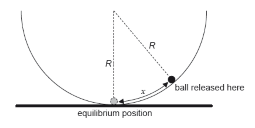 5.) The ball is displaced at a distance of x from the bottom center of the bowl and is released from a stationary position.