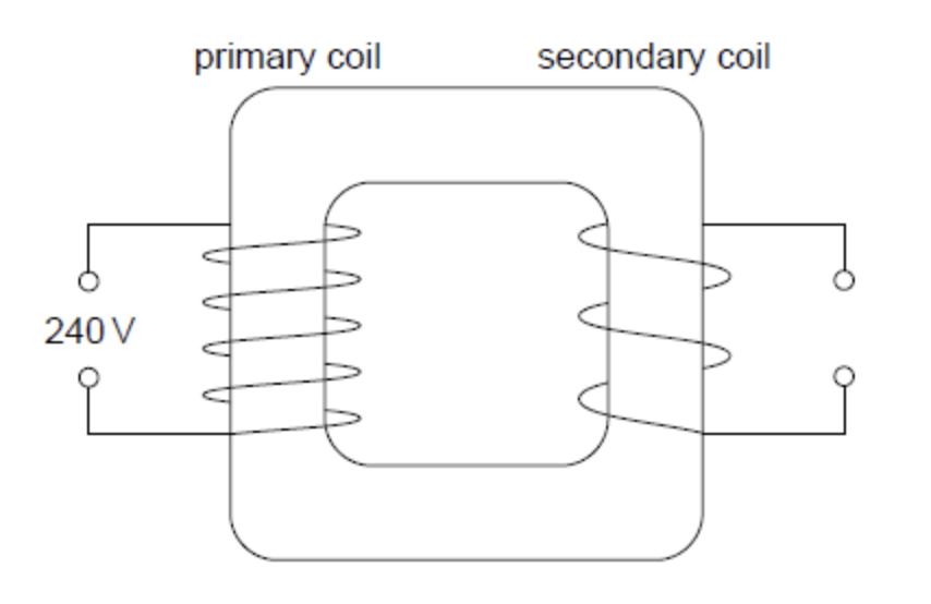 2.) The diagram below shows a sketch of a step down transformer with a voltage of 200 Volts. The number of turns in the primary coil is 1600 and 80 in the secondary coil.