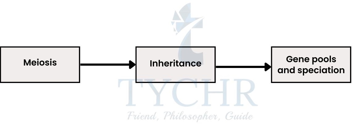 Figure 10.1 Chromosomes before and after replication - Formation of bivalent chromosome during prophase I. Random orientation and alignment on equatorial plate at metaphase stage followed by separations in next stages.