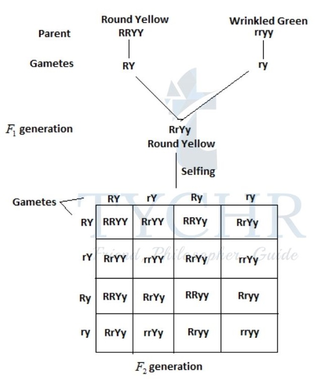- The combinations; RRYY and RrYy represent round yellow seed, rryy represents wrinkled green seeds.