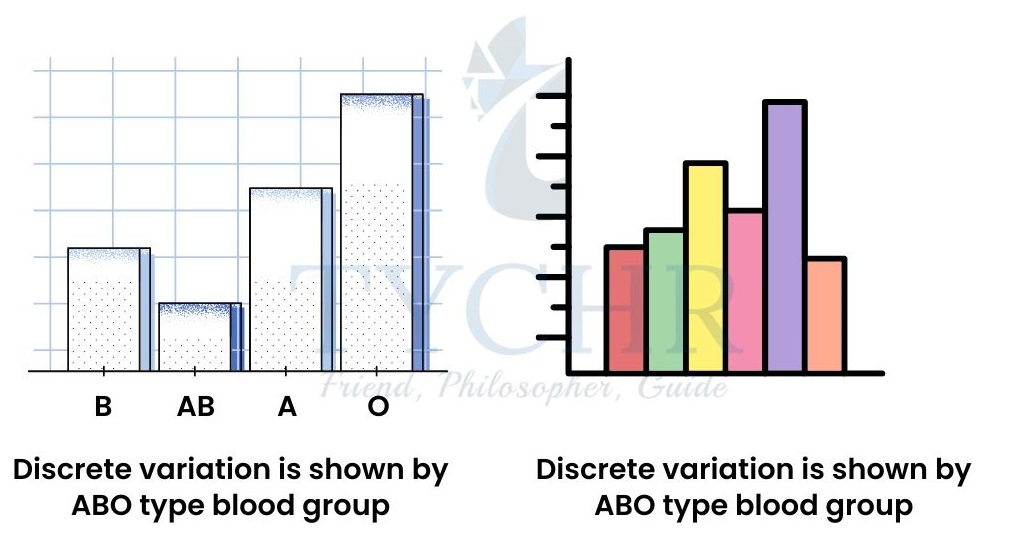 - Continuous variation deals with the spectrum of phenotypes and shows an uninterrupted range of phenotypes of a particular character while discontinuous variation deals with few phenotypes and can show two or more forms of a particular character.