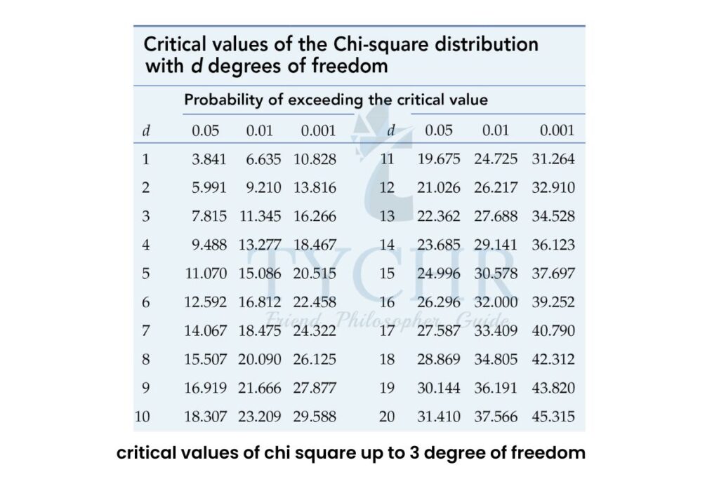 c is Greek letter called chi. - Here are the critical values of c2 up to 3 degree of freedom: