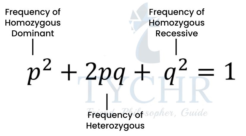 Let us consider, ‘p’ to be frequency of dominant allele and ‘q’ to be the frequency of the recessive allele. The equation will be,