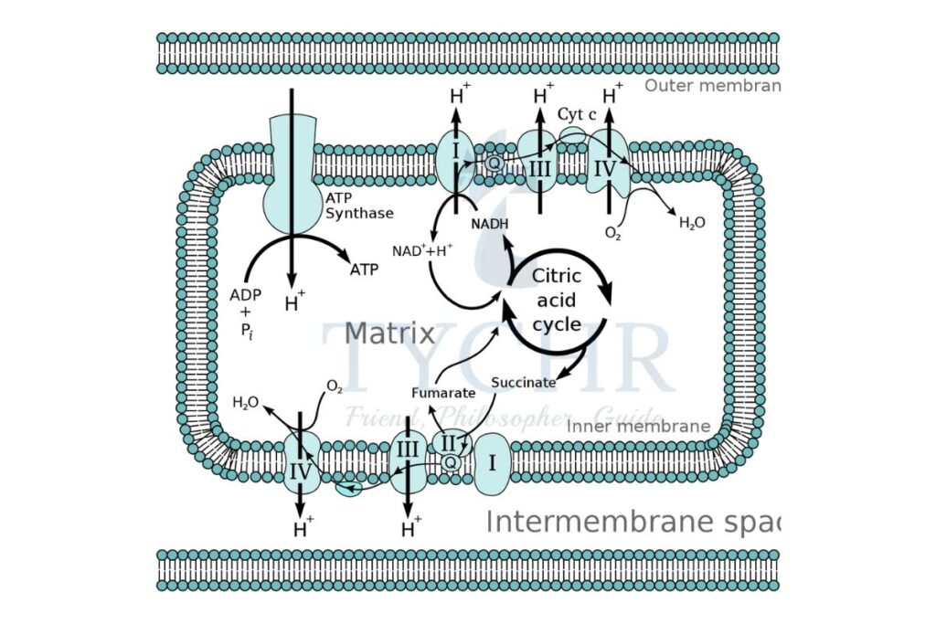 - The energy for protons transfer from mitochondrial matrix to intermembrane space is provided by electrons.