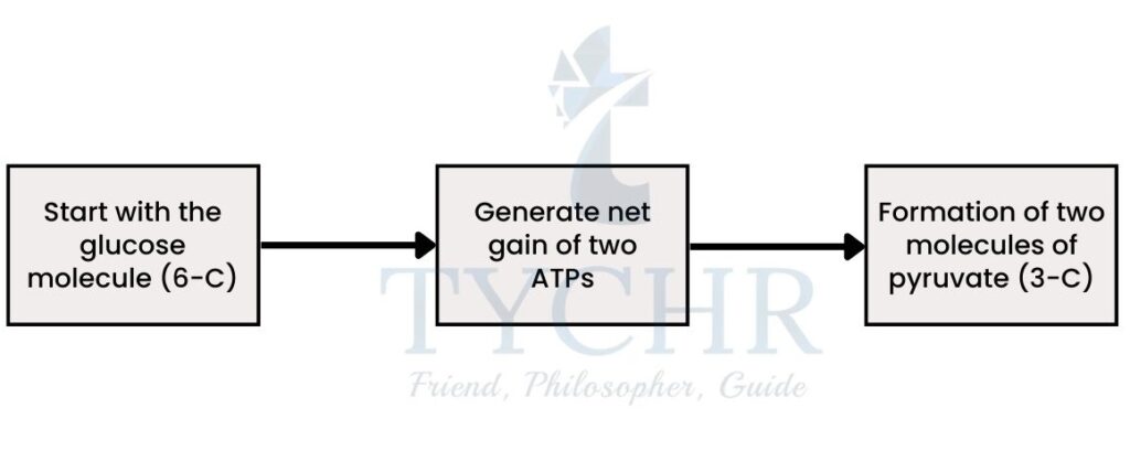 - In this process of glucose breakdown, 4 molecules of ATP are generated and two are used in the process to conduct. So, net gain of 2 molecules of ATP occurs.
