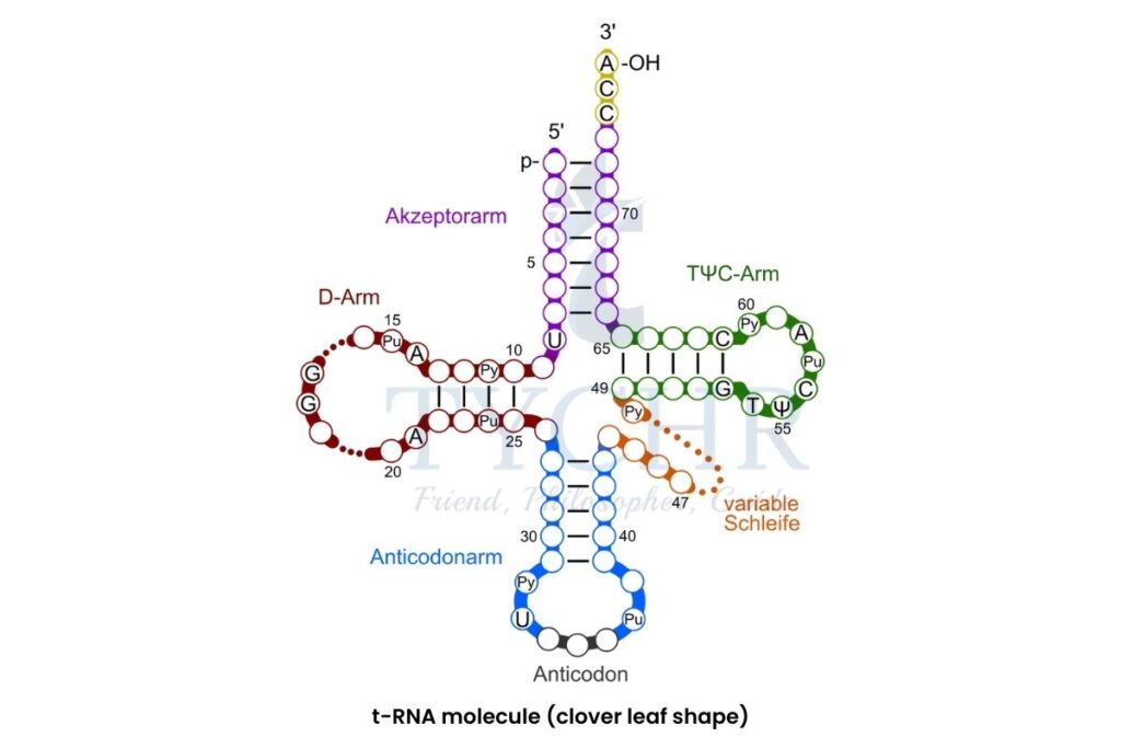 Figure 7.5 t-RNA molecule (clover leaf shape) - Process follows: It occurs in four considerable