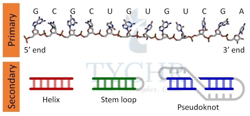 - It becomes double stranded by complementary base paring with the other same strand but opposite in orientation.