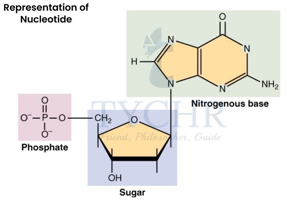 - There are 4 nitrogenous bases, each of which is present on a pentose sugar forming a complete nucleotide. Two of which are purines (double-ring structures) named adenine and guanine, and the other two are called pyrimidines (single-ring structures) named cytosine and thymine.