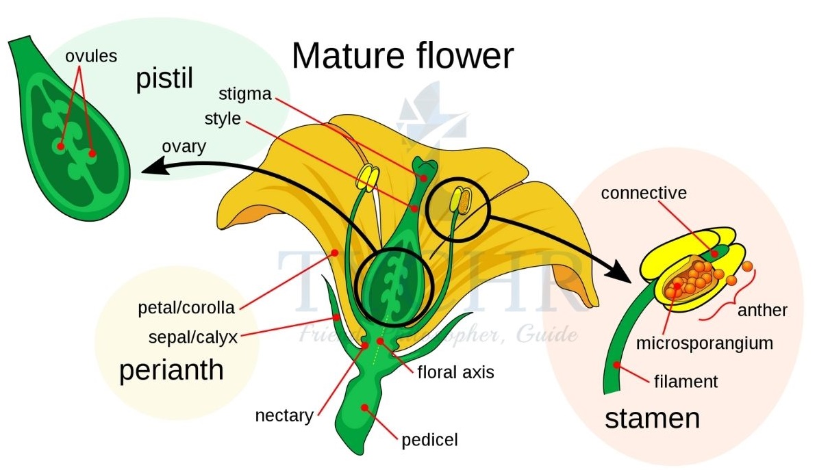 - There are four basic flower parts i.e. sepals, petals, stamens and carpel which makes the complete Lack of even one of these basic parts makes incomplete flower.