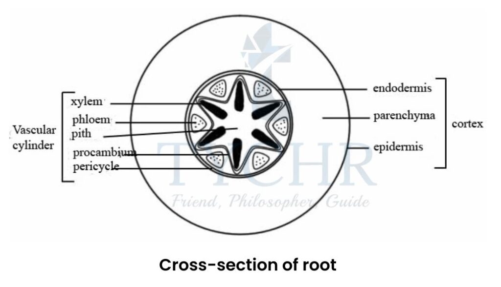 The movement of water from the root cortex into xylem allows movement of water from the soil into the roots. And from the roots, it moves into a vascular cylinder.