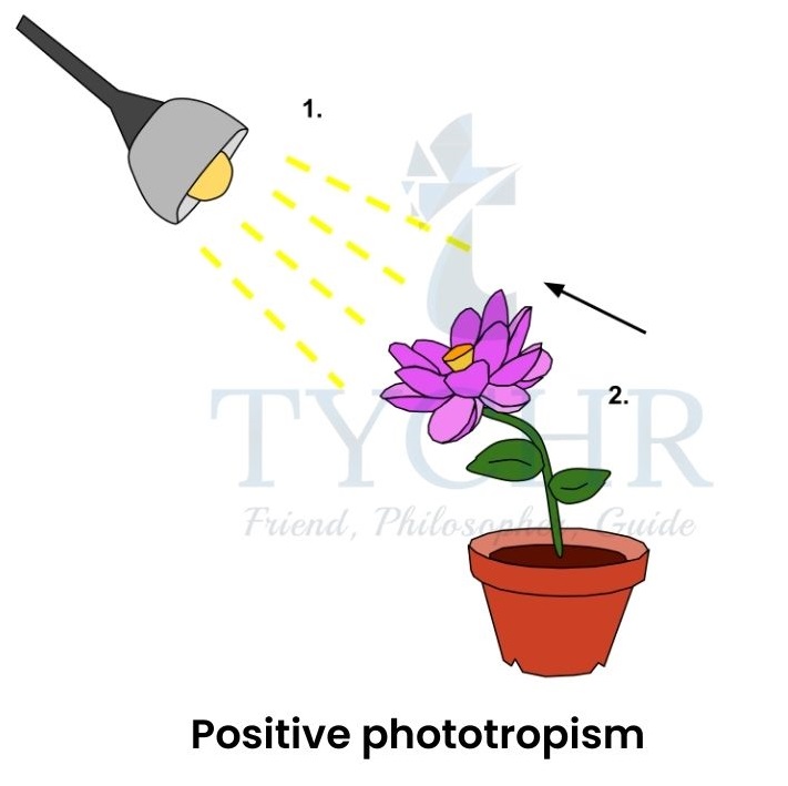Figure 9.5 Positive phototropism - Auxins play an important role in causing positive phototropism. These are found in embryo of the seeds and in shoot