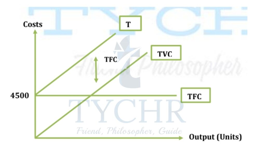 TC (Total cost of production) = TFC (Total fixed cost) + TVC (Total variable cost)