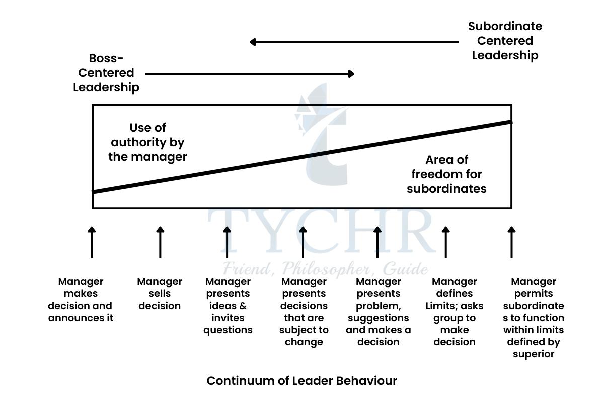 The model was designed by Robert Tannenbaum and Warren H. Schmidt and Robert Tannenbaum created the model. It demonstrates the connection between the team’s freedom and the authority of the leader. The diagram above depicts seven points, with the extremes represented by the far left and far right. It represents what will be leadership culture (the seven points) in an organization by establishing a relationship between the authority/control of leader and the freedom of the team members.