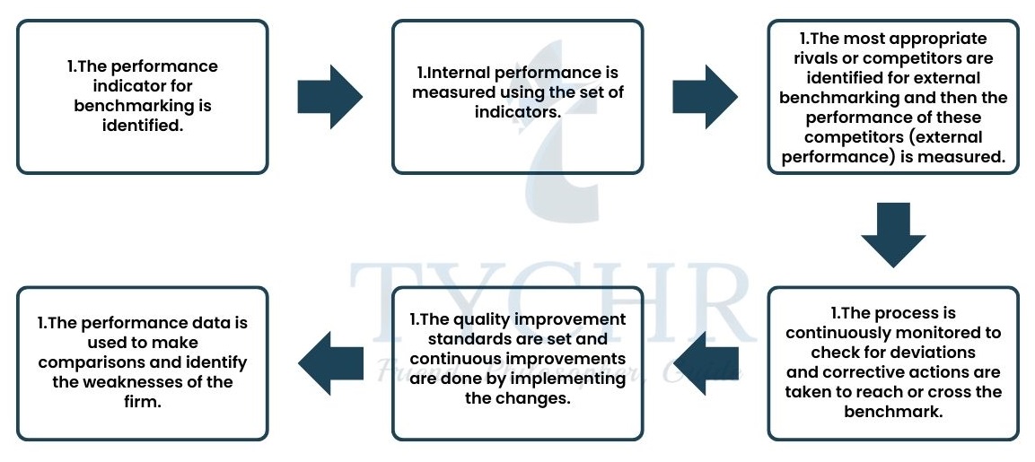 - Process benchmarking – Used to benchmark the processes and operations of a business. E.g.- risk management or recruiting process, etc.