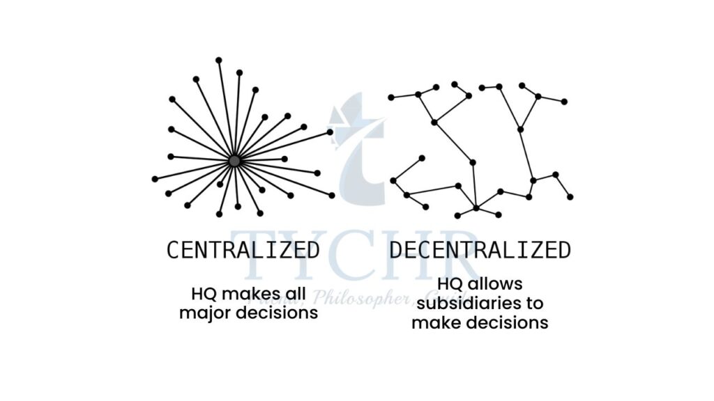 Let us have a look at the table to understand the meaning of the terms ‘centralization’ and ‘decentralization’ and the difference between the two.
