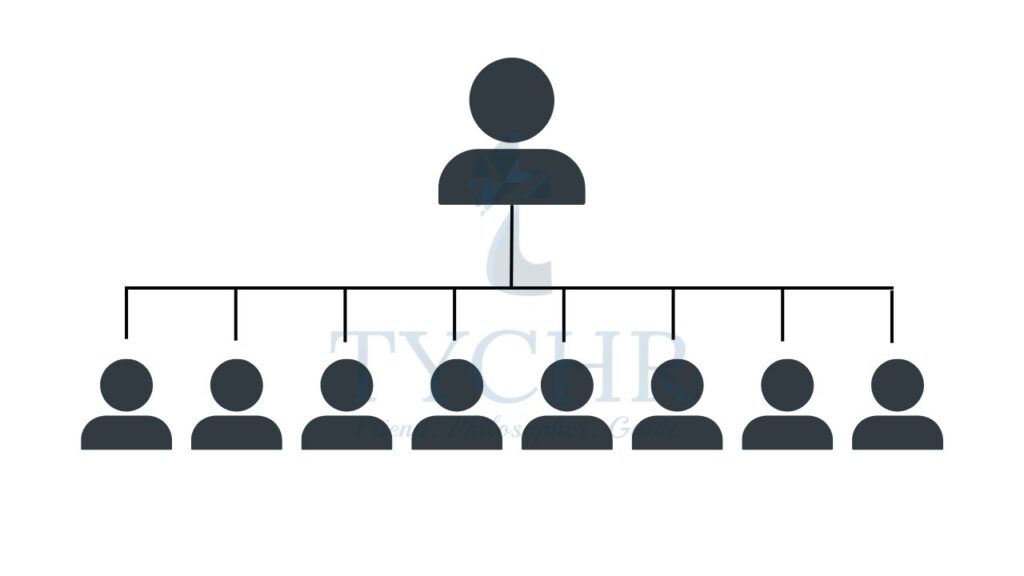 Wide span of control → Larger number of subordinates under a person → Fewer layers of hierarchy → Flatter/ horizontal structure