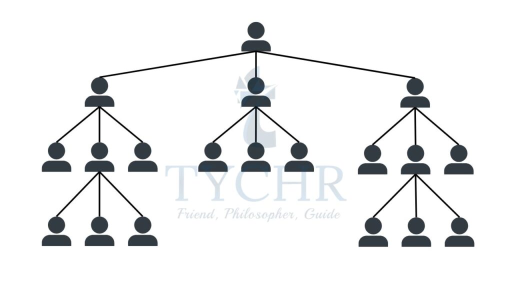 - Tall organizational structure = More number of levels of hierarchy = Long chain of command