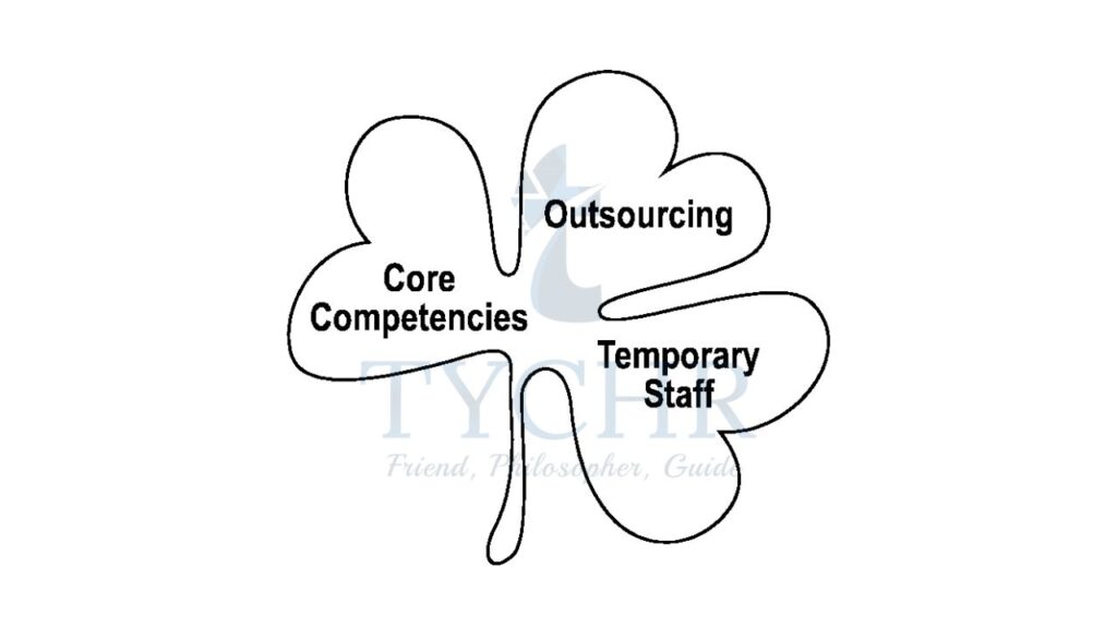 Charles Handy, an Irish author and philosopher coined the concept of Shamrock organization. The name for the organizational model has been derived from the plant named Shamrock which is three leaved. According to Handy, there are three groups of workers in the shamrock organization which are: