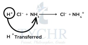 Figure 1: HCl transfers H+ to NH3. - Hydrogen atoms contain just one proton and one electron, so when they ionize by losing the electron, all that is left is the proton.