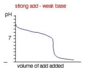Figure 10: Titration curve for strong acid–weak base. - The following points can be deduced from the graph: