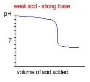Figure 9: Titration curve for weak acid–strong base - The following points can be deduced from the graph: