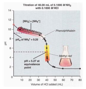 strong acid– weak base | methyl orange | 3.7 | 3.1–4.4 | red | yellow |