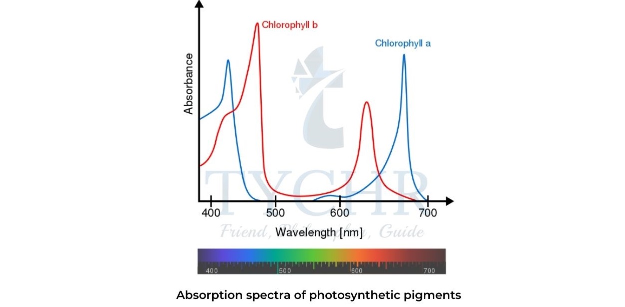 - At the same time, green and neargreen portions of the spectrum are reflected or transmitted, which is responsible for the green colour of plant leaves and other chlorophyll containing tissues.