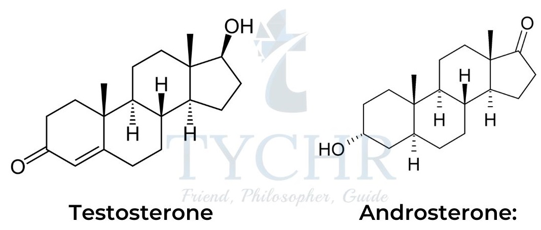 - The male sex hormones are produced in the testes and include testosterone and androsterone: