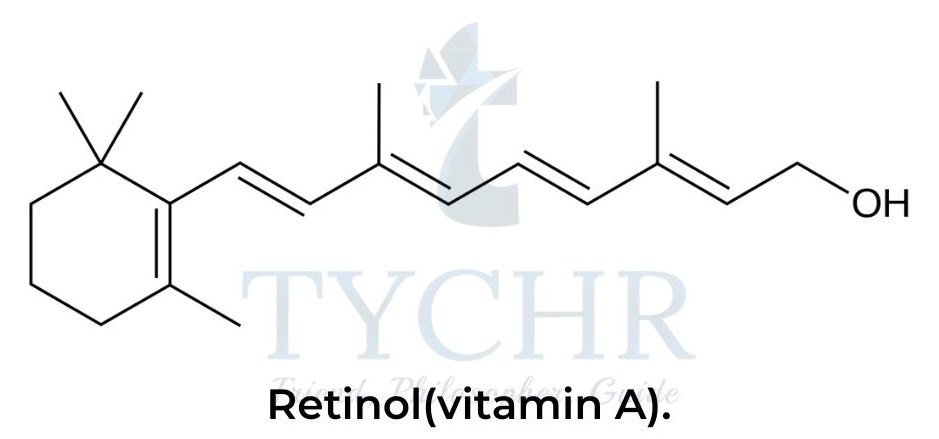 - For example, in two members of group A vitamins, retinol and β-carotene, the electron conjugation involves 10 and 22 carbon atoms, respectively.
