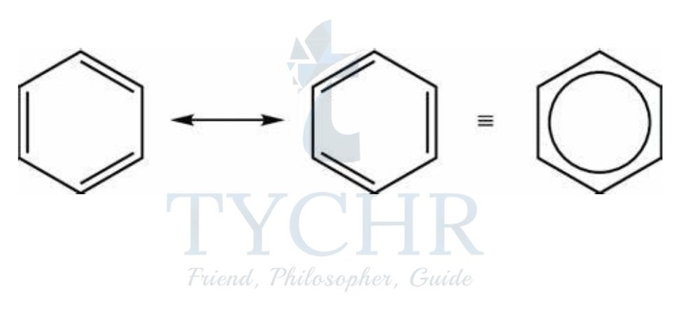 Figure 9: (a) Two Kekulé structures of benzene showing resonance. (b) Representation of benzene showing the delocalized nature of its π electrons