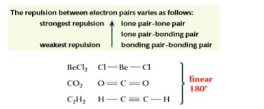 - The repulsion decreases in the following order: lone pair–lone pair > lone pair–bonding pair > bonding pair–bonding pair.