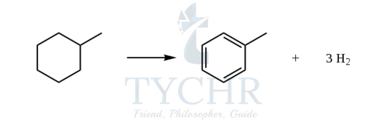 - Using a platinum catalyst with aluminium oxide, or other metal catalyst, reforms and dehydrogenates the alkane into an aromatic compound. For example, heptane can be converted into methylbenzene and hydrogen gas: