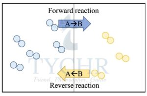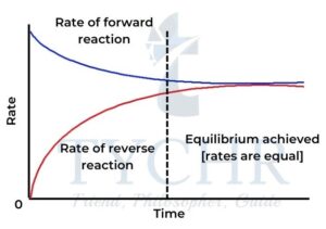 Figure 1: In a dynamic equilibrium the forward and reverse reactions occur at equal rates.
