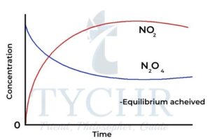 - The concentration of N2O4 decreases progressively while the concentration of NO2 The system approaches a dynamic equilibrium as the rates of the forward and reverse reactions become equal.