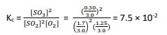 3.) Substitute the values into the equilibrium constant expression and determine the equilibrium constant. - For example: 2SO2 (g) + O2 (g) ⇋ 2SO3 (g)
