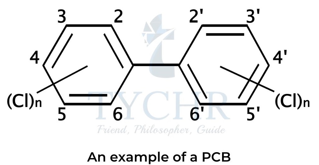 - Polychlorinated biphenyls (PCBs) are synthetic organic molecules containing two benzene rings with some or all hydrogen atoms replaced by chlorine.